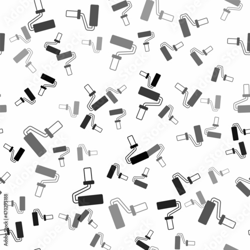Black Paint roller brush icon isolated seamless pattern on white background. Vector