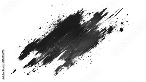 Black paint splatter on a transparent background showcasing artistic texture and motion in creative expression.