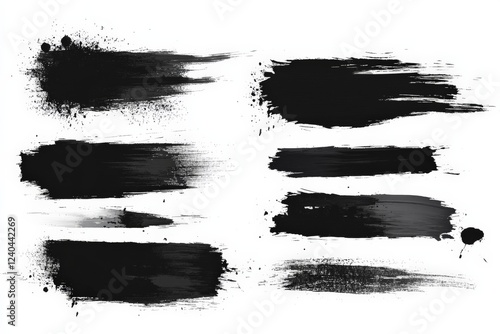 Black paint strokes on white background showcasing different brush techniques and textures for artistic design