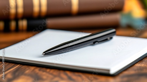 Black Pen on a Blank Notebook, Legal Documents in Background