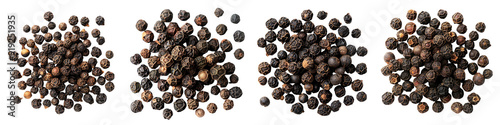 Black pepper - Close-up of whole black peppercorns scattered against a transparent background - Simple and natural, showcasing the texture and roundness of the peppercorns