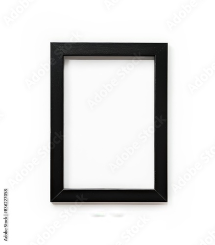 Black picture frame on white background, no text or letters inside the black wooden photo frame, isolated, flat lay