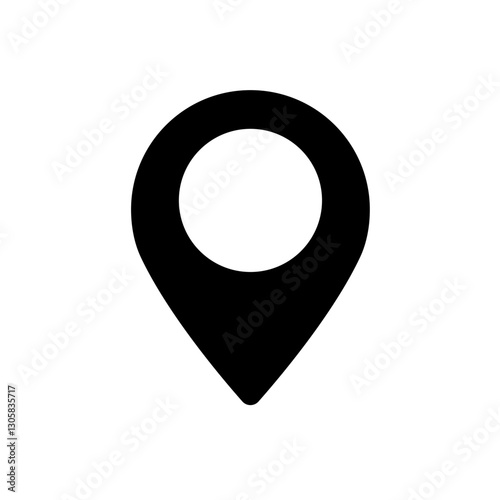 Black pin for maps and navigation systems to mark current location. User Interface icon design. Vector illustration.