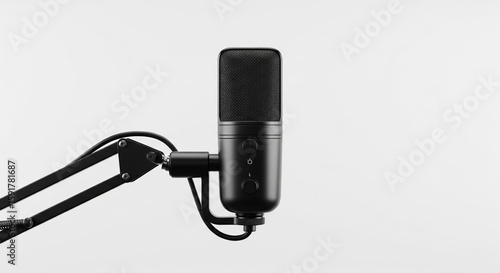 Black Podcast Microphone on Long Scissor Arm - Left Third Framing