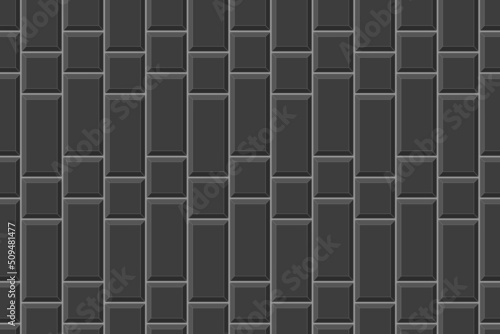 Black rectangle and square tile vertical masonry background. Ceramic or brick wall seamless pattern. Kitchen backsplash or bathroom floor texture. Vector flat illustration