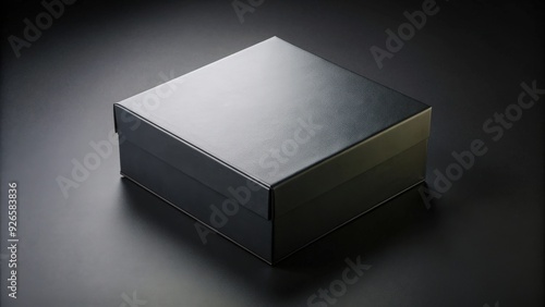 Black rectangular folding gift box mockup on black background. Side view, gift, packaging, box, present, rectangle, black, mockup