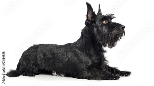 Black Scottish Terrier in Profile on White Background