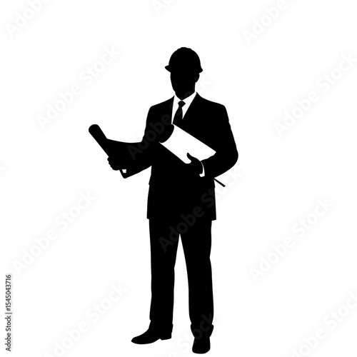 Black silhouette architect blueprints design professional figure building plans architecture construction