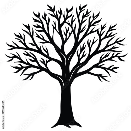Black Silhouette of a Bare Tree with Intricate Branches winter