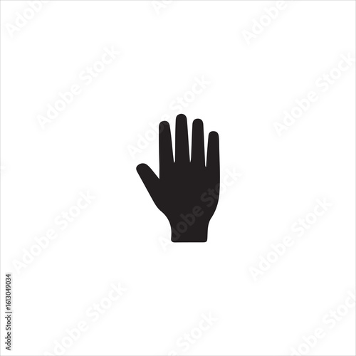 Black silhouette of a hand with fingers spread open on white background open hand palm