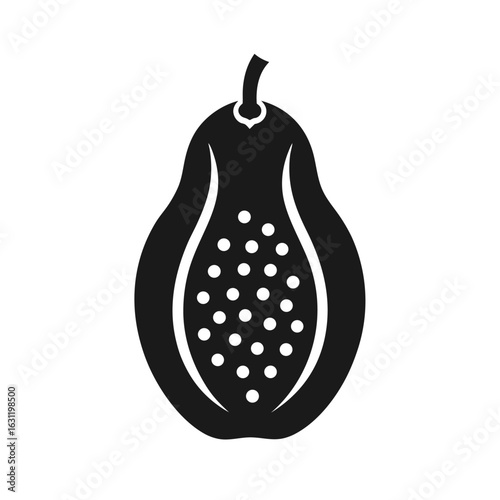 Black silhouette of a papaya fruit with seeds on a white background vector illustration