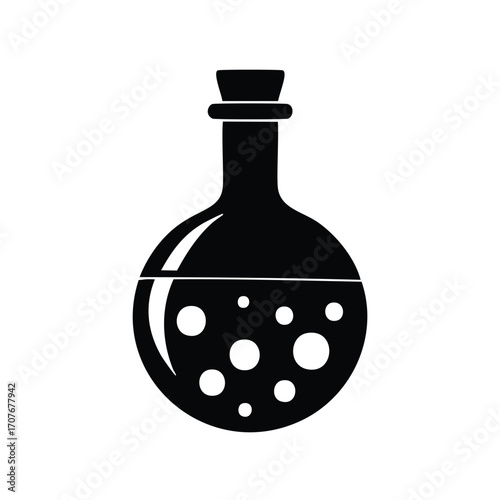 Black silhouette of a potion bottle with liquid and bubbles