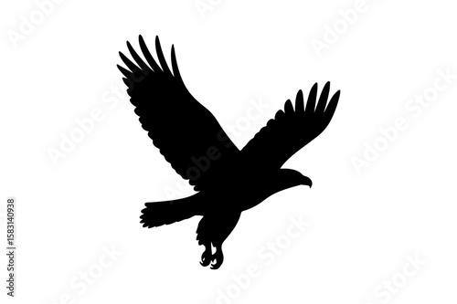 Black Silhouette of a Soaring Eagle with Wings Spread on White Background