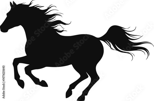 Black Silhouette of Galloping Horse with Flowing Mane and Tail – Dynamic Running Horse Vector Illustration for Art, Print, and Design
