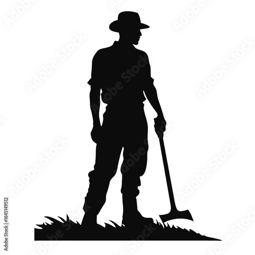 Black silhouette, tattoo of a gardener with shovels. on white isolated background. Vector.