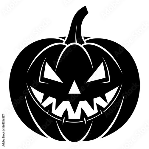 Black silhouette vector illustration of a Halloween pumpkin with carved face isolated on white background with bold clean shape and minimalist modern design for professional use
