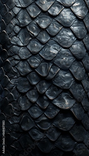 Black snake skin leather texture. Close up reptile background