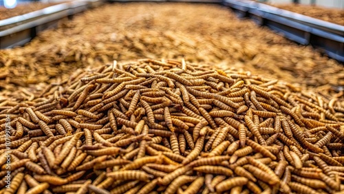 Black soldier fly larvae being produced as animal feed in an insect factory farm, Black soldier fly