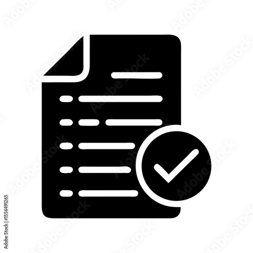 Black Solid Document Approval Icon, Verified Paper, Checkmark Symbol