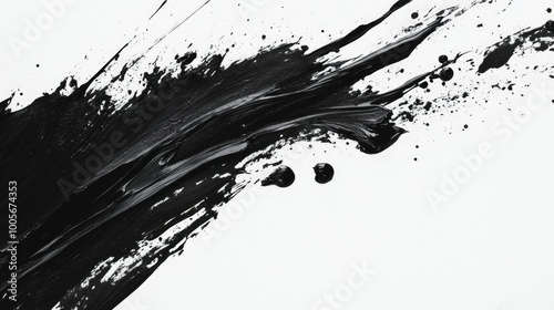 Black splashes and brushstrokes isolated on a white surface, chaotic and expressive