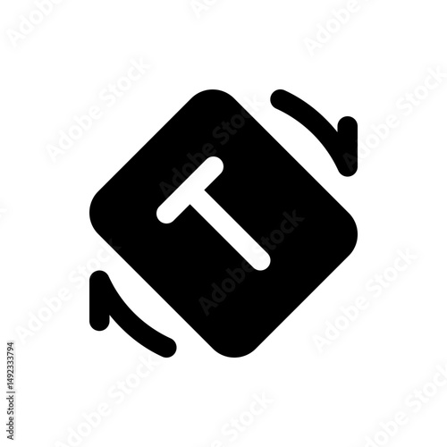 Black square rotated with white letter t inside and arrows indicating rotation on both sides of the square