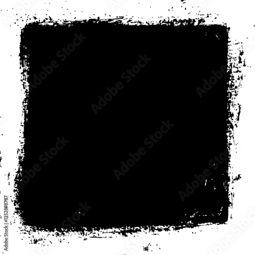 Black square texture mask with a distressed border, ideal for graphic design and photo editing overlays.