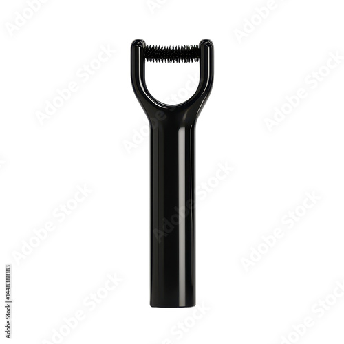 Black stainless steel multi-purpose kitchen peeler with ergonomic handle and sharp blade design for peeling vegetables and fruits efficiently on transparent background
