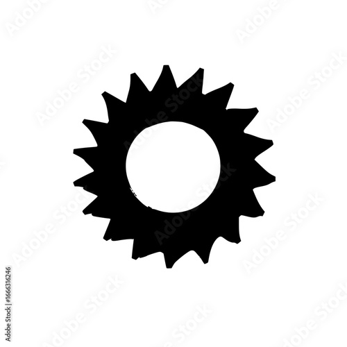 Black sun icon with sharp rays creating a striking silhouette against the white background