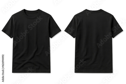 Black t shirt front and back view mockup isolated on transparent background