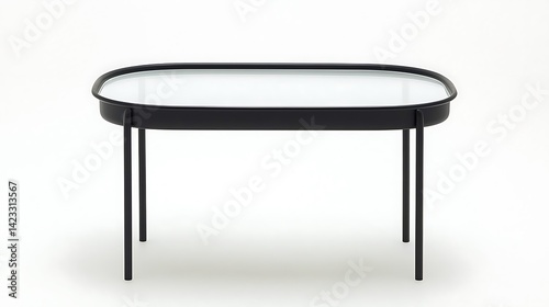 Black table with a glass top sits on a white background
