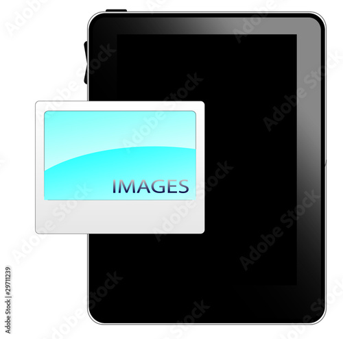 Black tablet pc with image icon