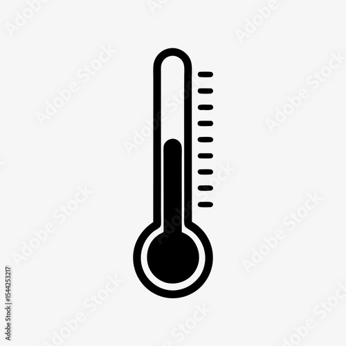 Black thermometer icon isolated on white background, simple vector temperature measurement symbol