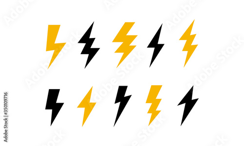 Black thunder and yellow lighting icons set on white background. Flash and voltage Vector illustration set on white background