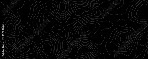Black Topology and Topography Vector Layered Paper Cutout Abstract Background. Smooth Wavy curve lines banner design vector map seamless pattern. Thin curved wavy lines topology on a black background.