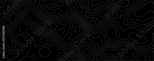 Black Topology and Topography Vector Layered Paper Cutout Abstract Background. Smooth Wavy curve lines banner design vector map seamless pattern. Thin curved wavy lines topology on a black background.