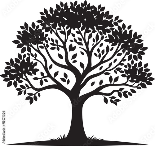 Black Tree Silhouette Vector Illustration with Editable Transparent Background