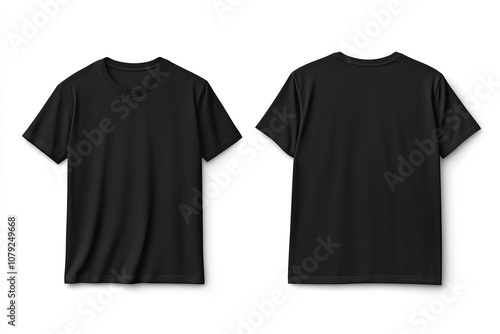 Black T-shirt front and back view for mockup or branding purposes. AI generated image