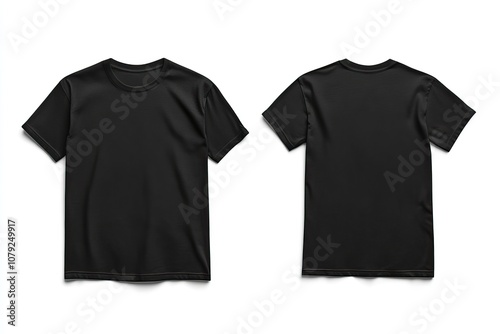 Black T-shirt front and back view for mockup or branding purposes. AI generated image