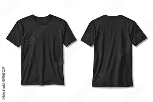 Black T-shirt front and back view for mockup or branding purposes. AI generated image