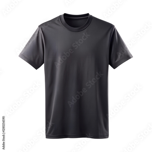 Black t-shirt front side view isolated on transparent background