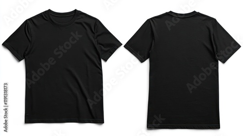 Black t-shirt mockup, front and back, studio, white background, apparel design (1)