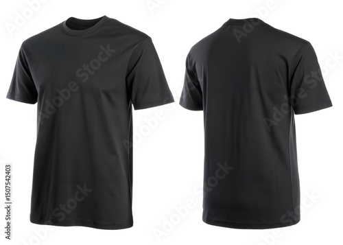 Black T-shirt Mockup Front and Back View Blank Apparel Template for Design Isolated White Background