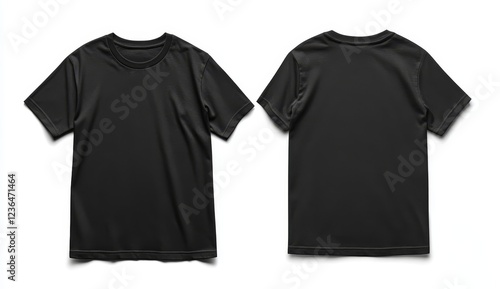 Black t-shirt mockup, front and back views, isolated on white background. (3)