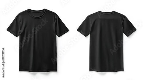 Black T-shirt template mockup on a white background, front and back view