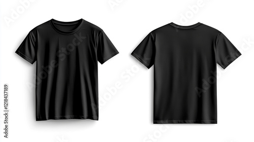 Black T-shirt template on a white background, front and back view of a T-shirt mockup for sportswear fashion concept design