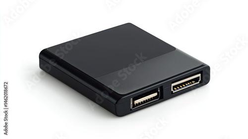 Black USB Hub with Two Ports for Computer and Laptop Connectivity