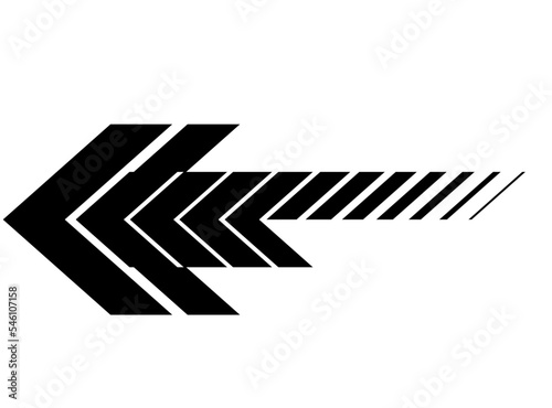 Black vector arrow on a white background. Pointer. Symbol. Wall art, Vehicle decal. Striped design element. Modern vector background.
