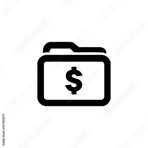 Black vector icon of a file folder with a dollar symbol, representing budget, financial records, or money management.