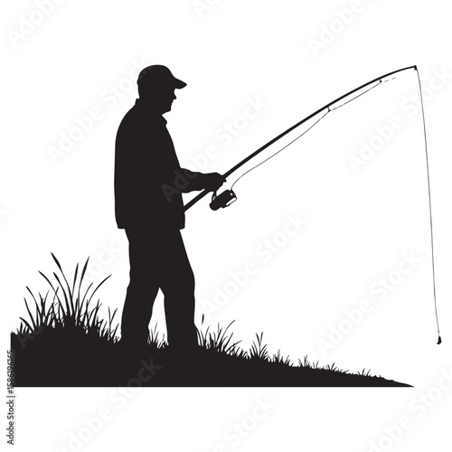 Black vector silhouette of a person fishing with a rod, capturing the sport and leisure of an angler