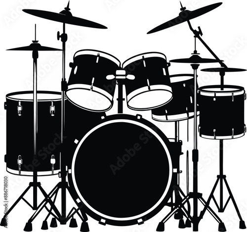 Black white drum set silhouette vector Style illustration. Generative AI